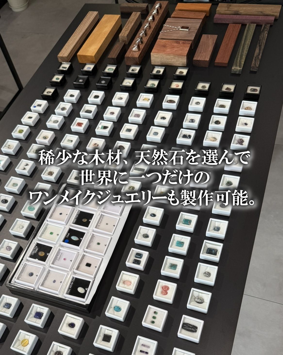 素材変更(シルバー・ゴールド)、レアストーンやウッドを使ったオリジナル制作、コーティング、サイズ調整など、組み合わせは自由自在です。