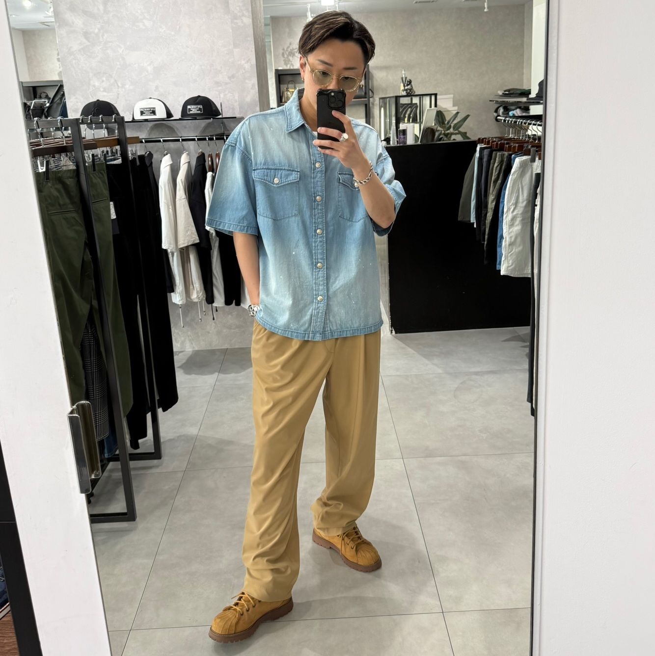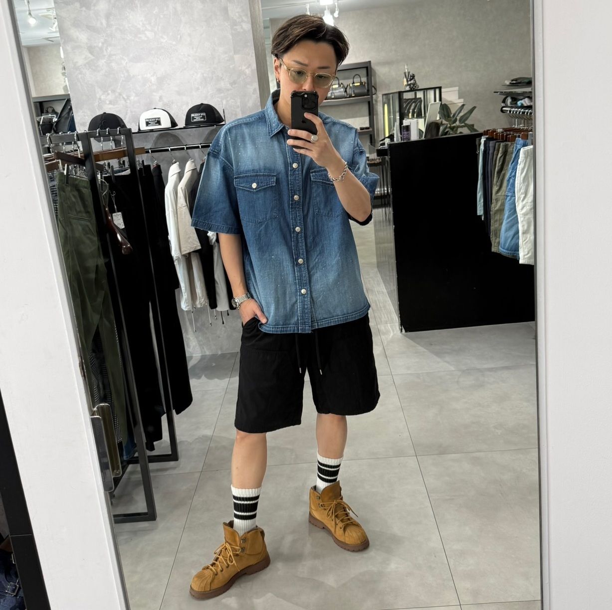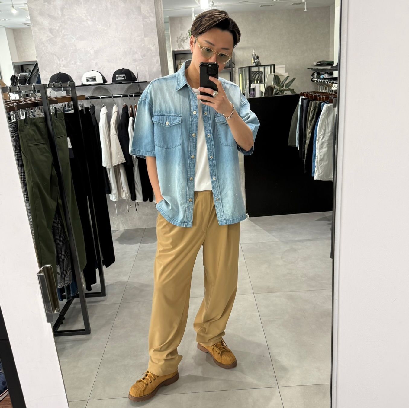 トップスは、イベントでも人気だったボックスロゴTEEと、加工感が魅力の半袖デニムシャツ。
