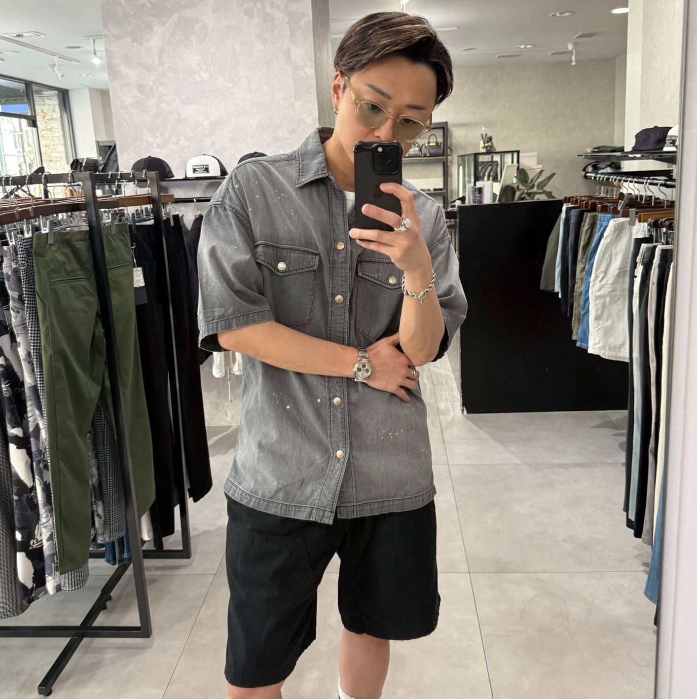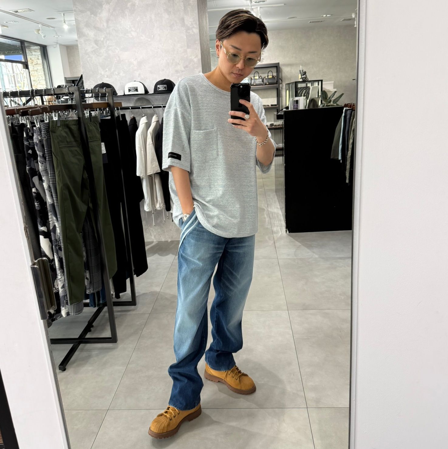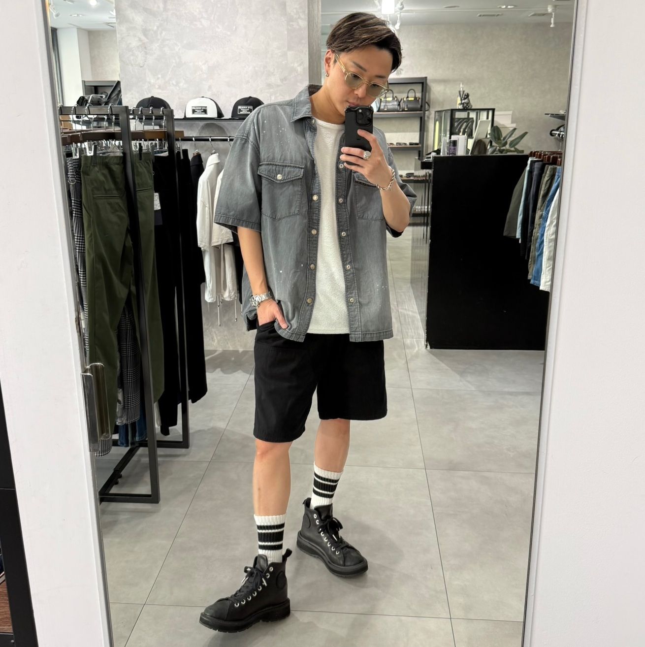 トップスは、イベントでも人気だったボックスロゴTEEと、加工感が魅力の半袖デニムシャツ。