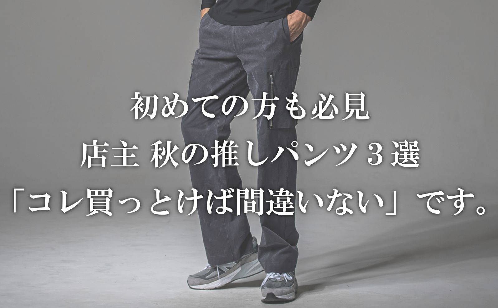 RESOUNDはパンツの種類が多すぎて選べない。。という方にRESOUNDの良さを熟知した店主稲葉がオススメするパンツ3選をご紹介!