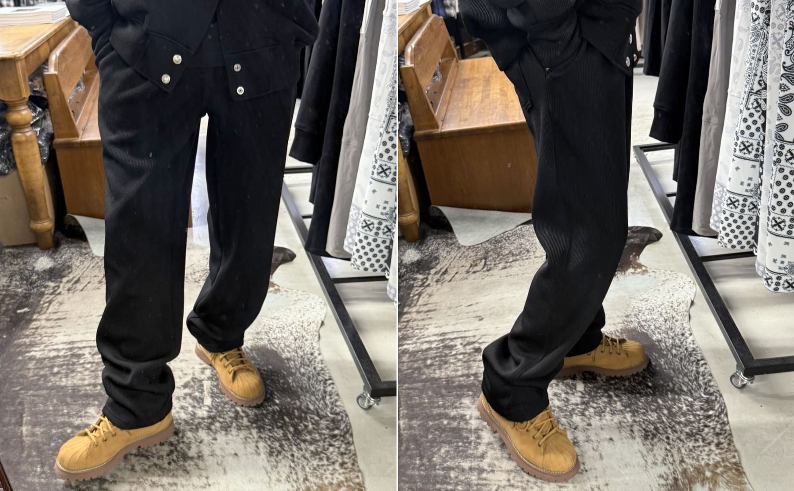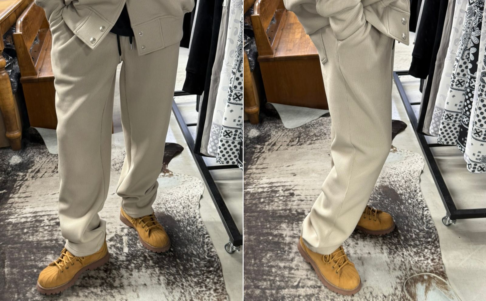 前回は裏起毛で登場し、瞬く間に品薄となった定番ジョンソンラインのワイドパンツ。