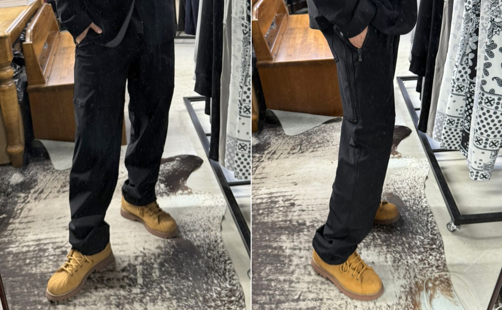 ライン付き・ジップポケット・ワイドという良いとこどりのハイブリッドな一本です。
