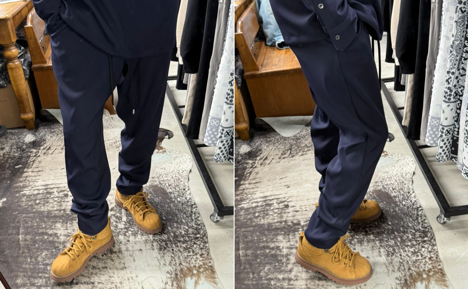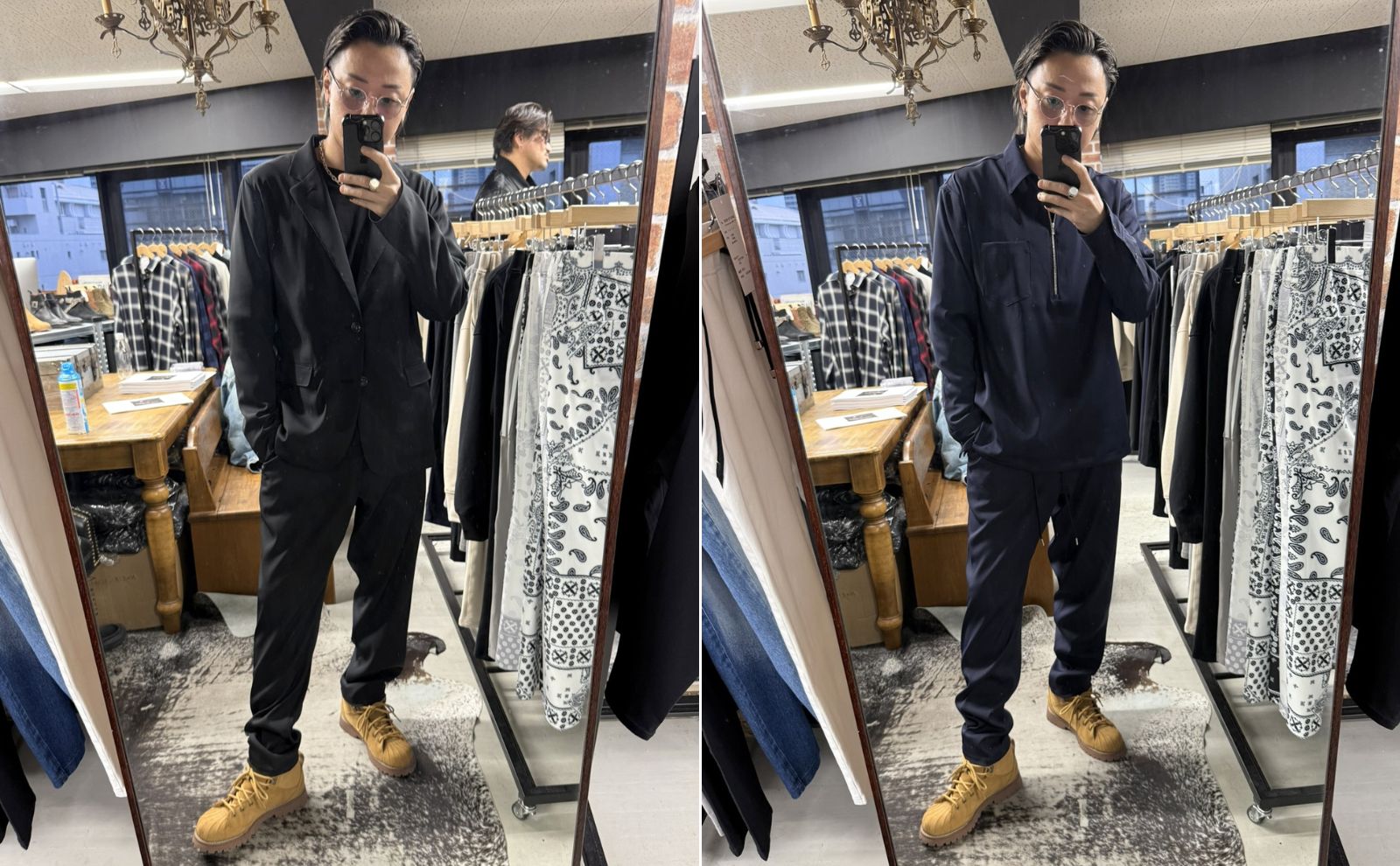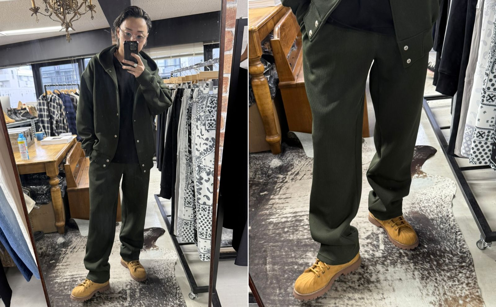 テーラードやハーフジップシャツとのセットアップもめちゃくちゃオシャレです。