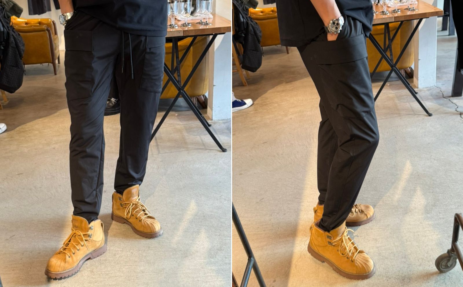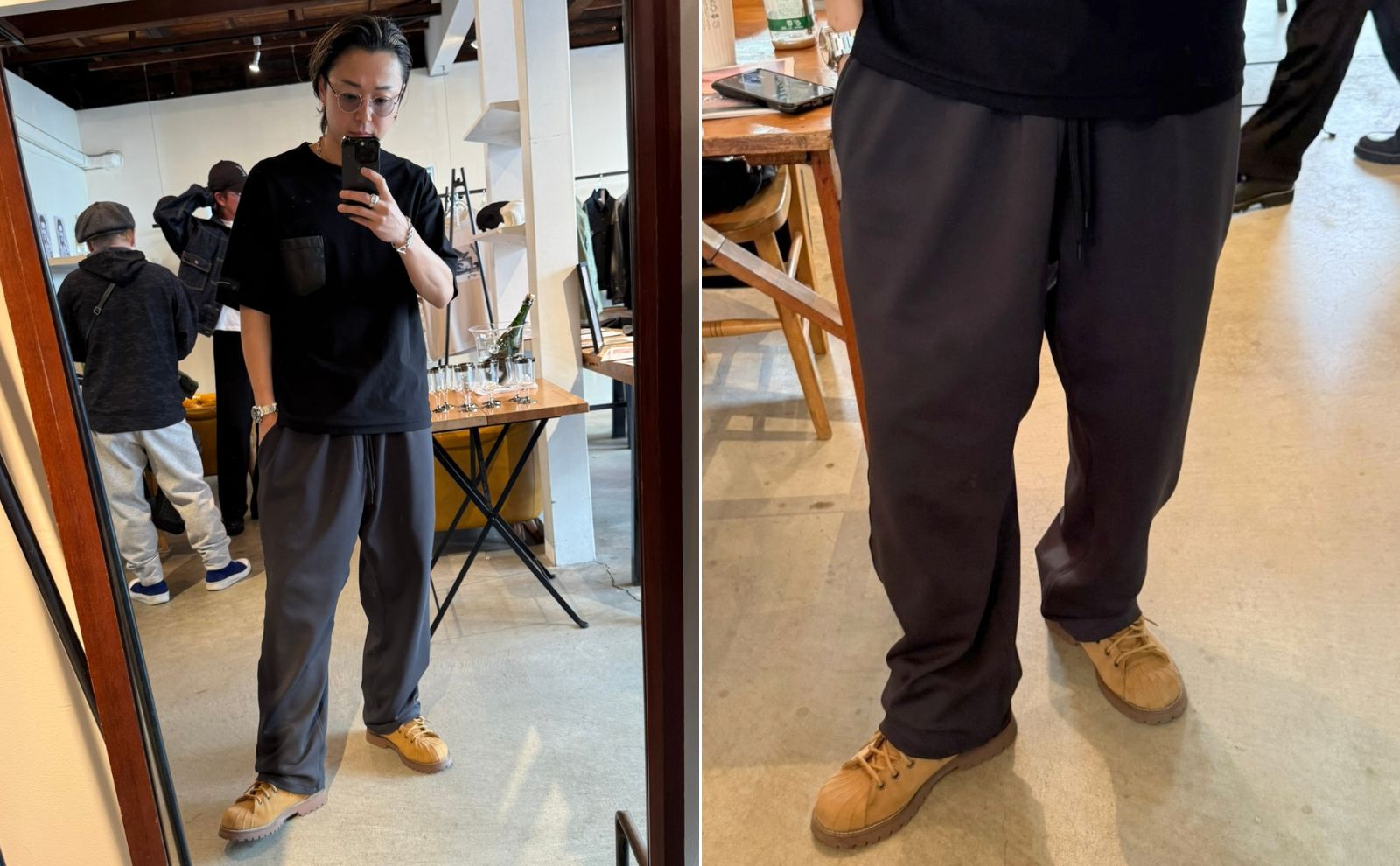 RESOUNDも含めて、ワイドパンツ需要が高まってきており、これぐらいの太さを好まれる方も増えてきました。