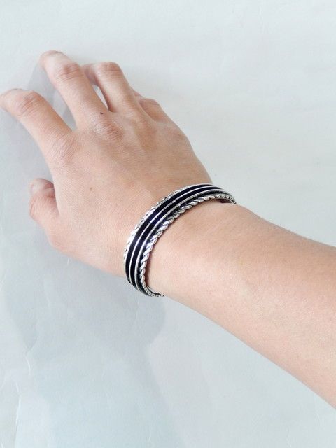 インディアンジュエリーの中では比較的近代的なデザインで、スタイリッシュな印象です。