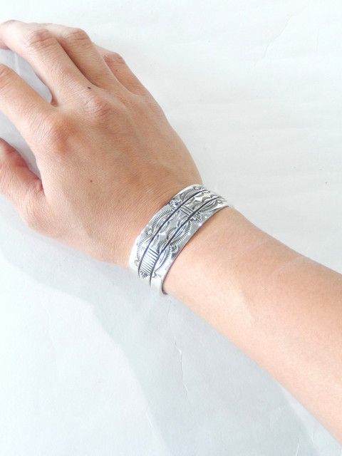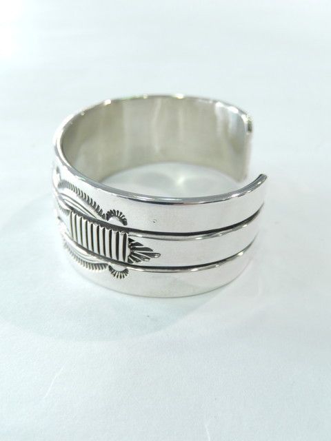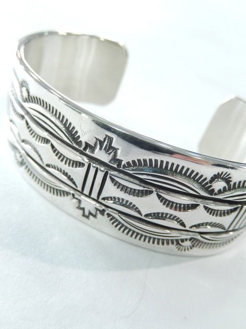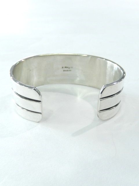 バングルの裏側にはアーティストのホールマーク(刻印)「B.MORGAN」と、シルバーがスターリングシルバー(純銀)であることを表す「STERLING」の英字が刻まれております。