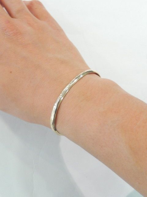 タガネを使って銀版に模様を打ち込むというナバホ族が得意とするスタンプワークが施されたバングル。