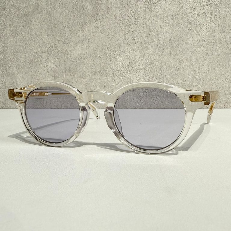 50年代のパントスタイルを顔馴染みの良いサイズバランスに仕上げ、オリジナルライトカラーレンズを採用したモデル。