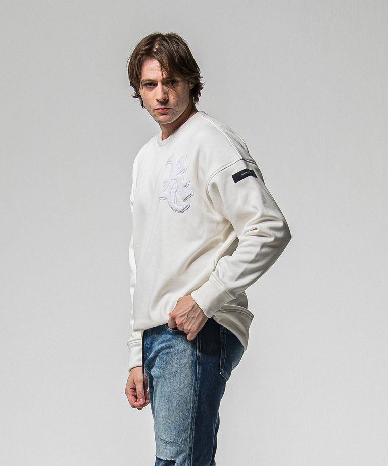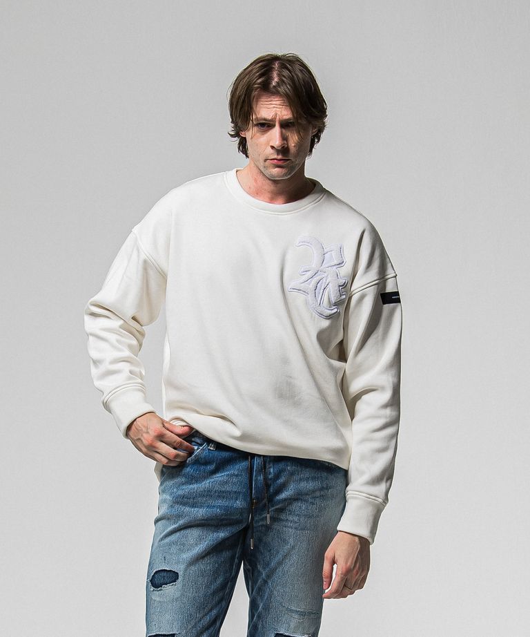 RC CHENILLE VELOURS FLEECE DROP TRAINER / RC38-C-004 / 裏起毛刺繍ワッペントレーナー / ホワイト (11月上旬入荷予定)