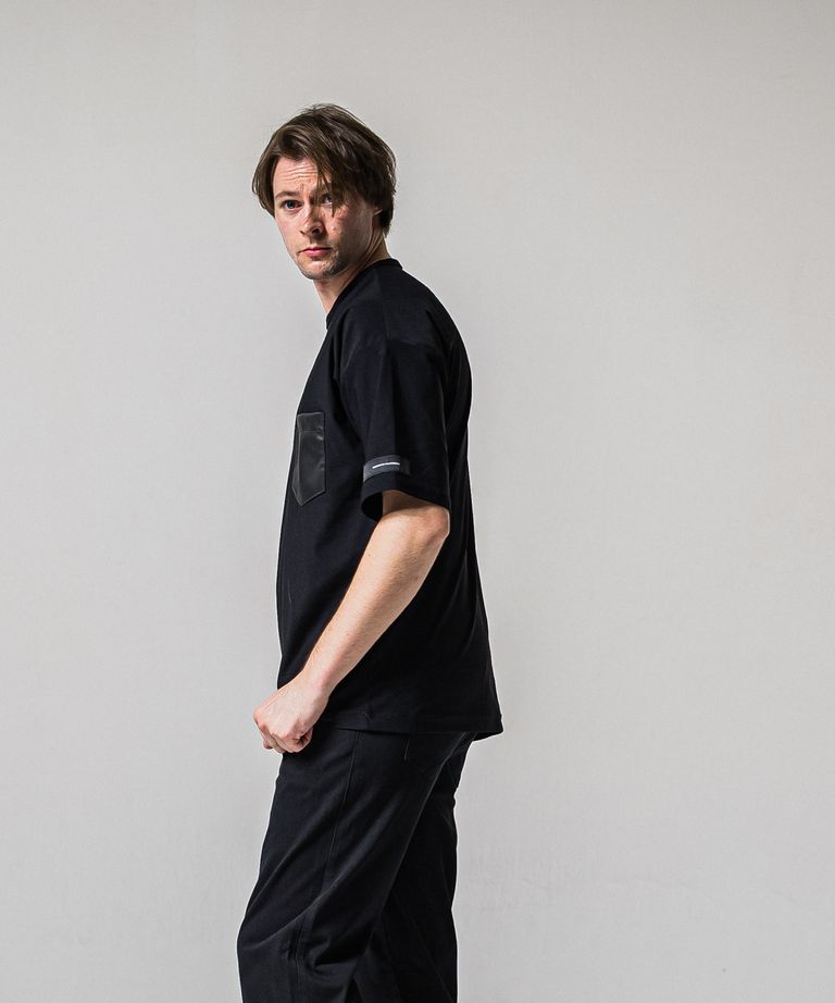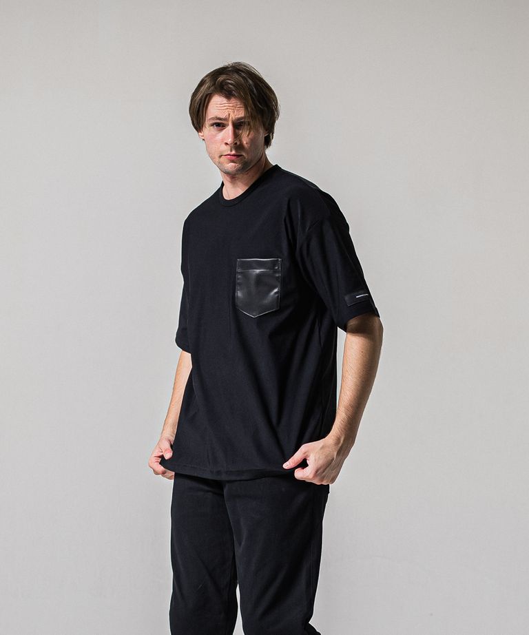 LEATHER POCKET OVER NYLON T / RC39-T-005 / レザーポケットナイロンビッグTシャツ / ブラック (4月上旬入荷予定)