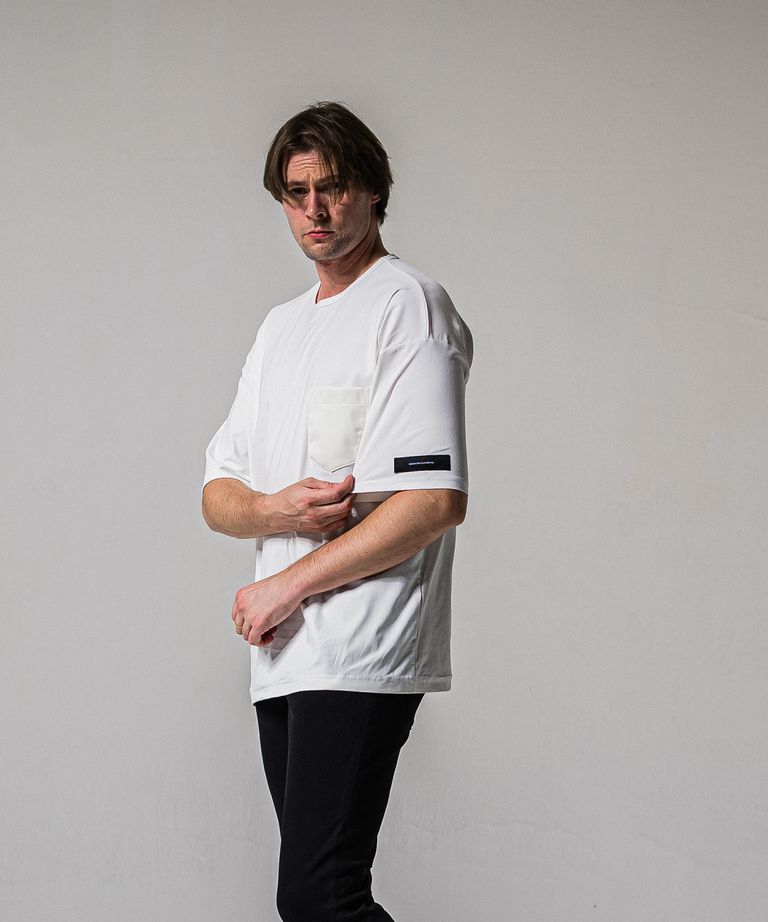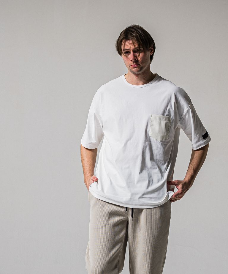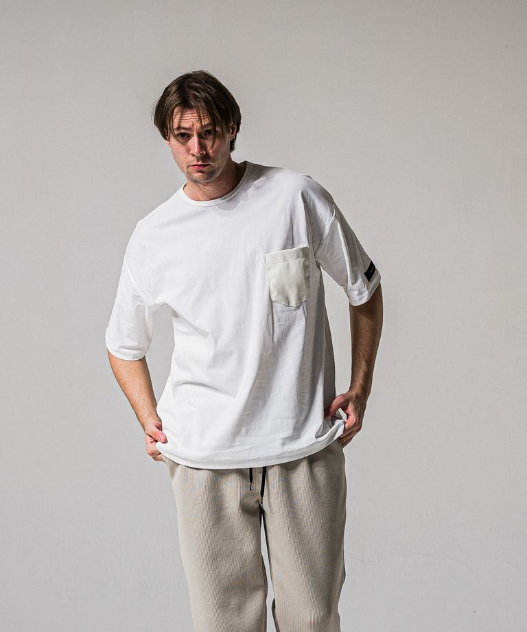 LEATHER POCKET OVER NYLON T / RC39-T-005 / レザーポケットナイロンビッグTシャツ / ホワイト (4月上旬入荷予定)