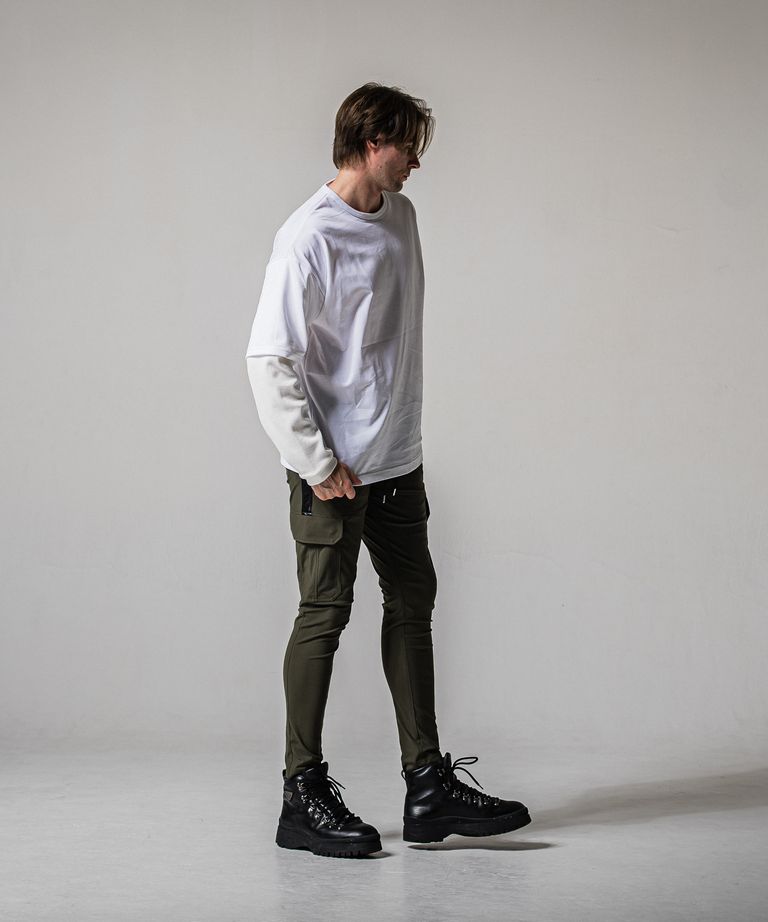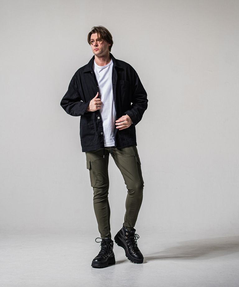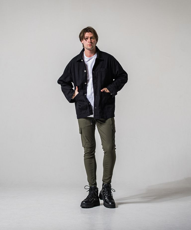 DARRELL CARGO PT / BASIC-ST-010 / ナイロン レザーラインカーゴパンツ / カーキ×レザーブラック (2月下旬入荷予定)