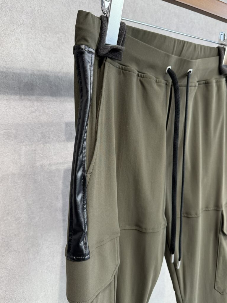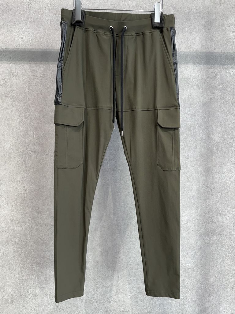 DARRELL CARGO PT / BASIC-ST-010 / ナイロン レザーラインカーゴパンツ / カーキ×レザーブラック