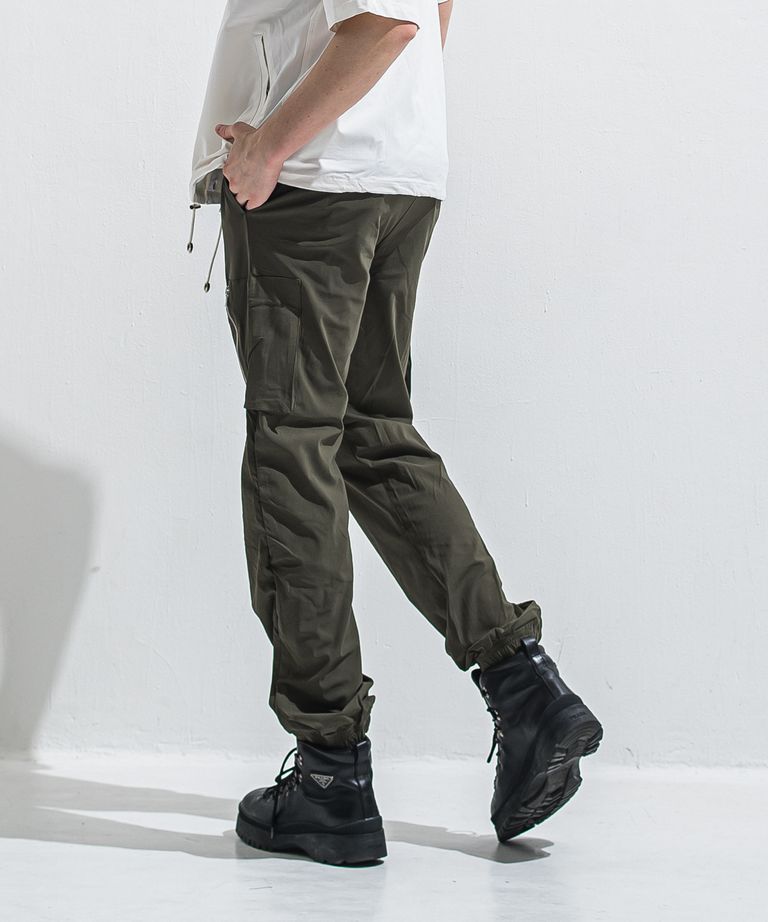DAVID NYLON CARGO PANTS / RC40-ST-040 / ミリタリーナイロン裾ゴムカーゴパンツ / カーキ (6月中旬入荷予定)
