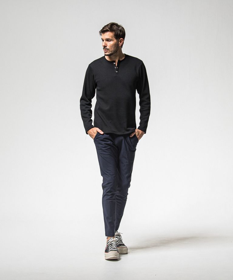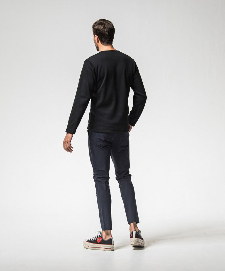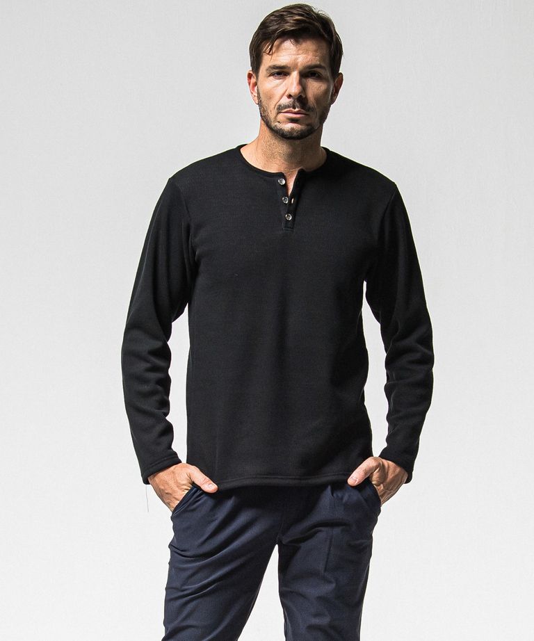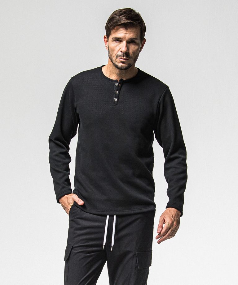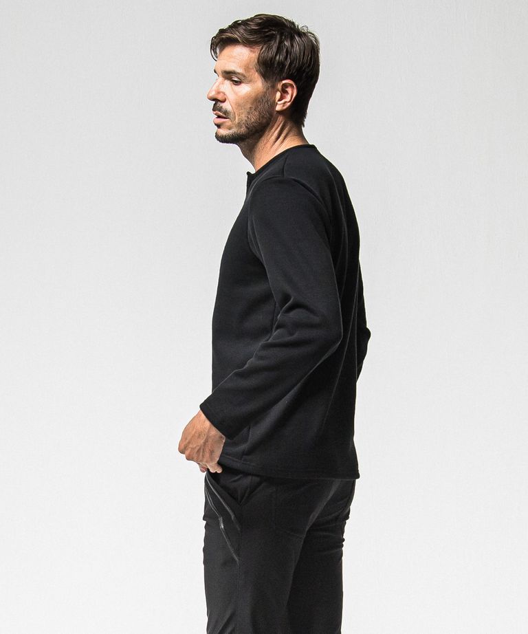VELOURS FLEECE THERMAL HENRY / RC38-C-003 / 裏起毛サーマルヘンリーネックロングTシャツ / ブラック (10月中旬入荷予定)