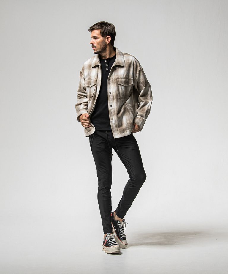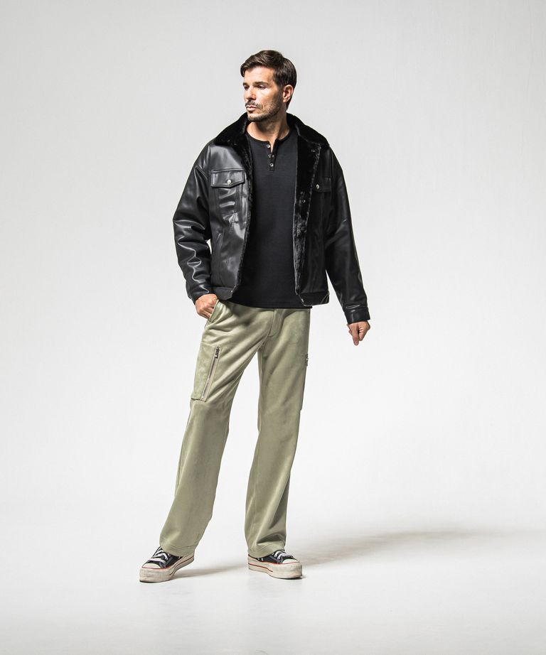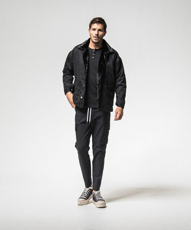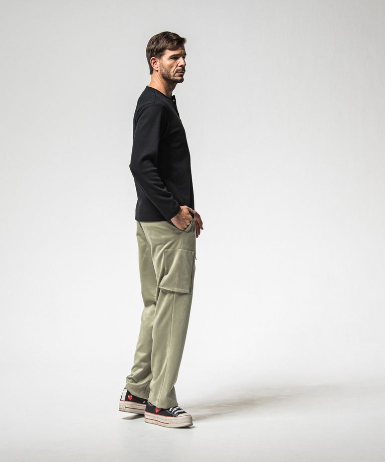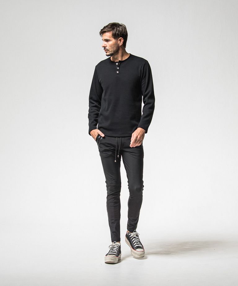 VELOURS FLEECE THERMAL HENRY / RC38-C-003 / 裏起毛サーマルヘンリーネックロングTシャツ / ブラック (10月中旬入荷予定)