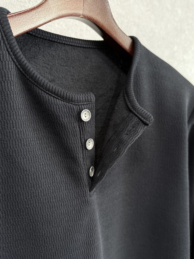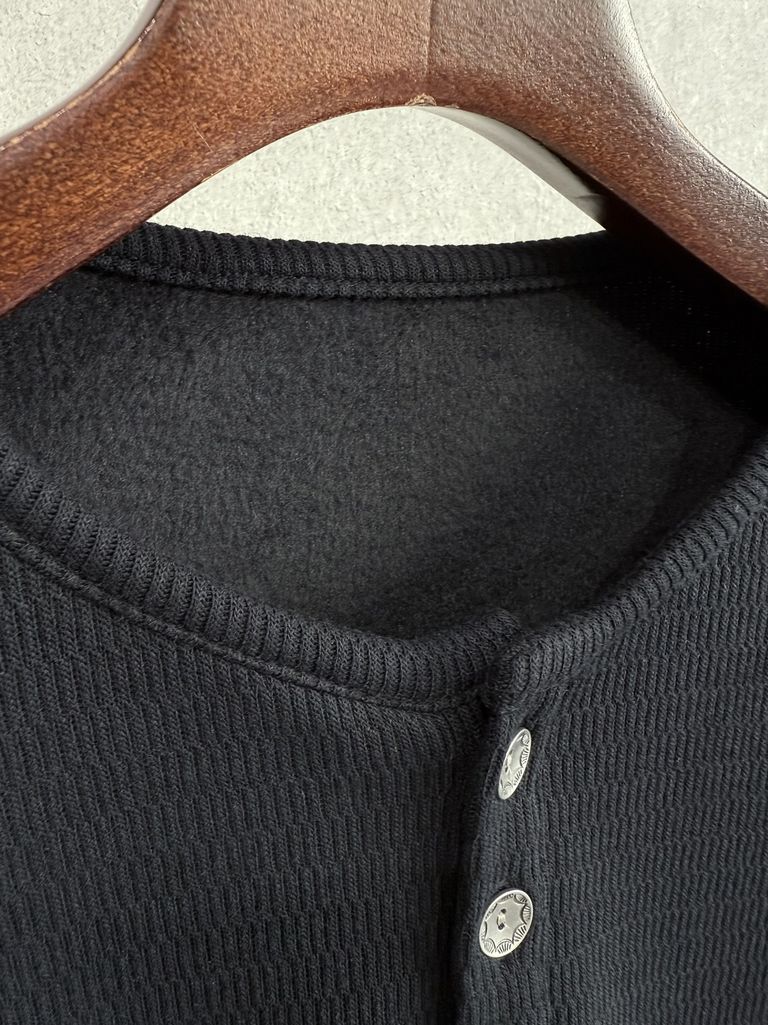 VELOURS FLEECE THERMAL HENRY / RC38-C-003 / 裏起毛サーマルヘンリーネックロングTシャツ / ブラック