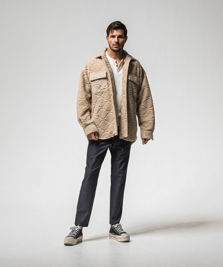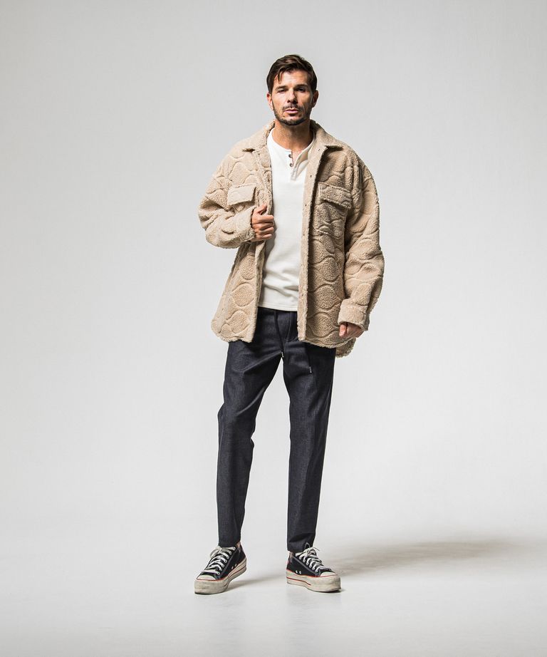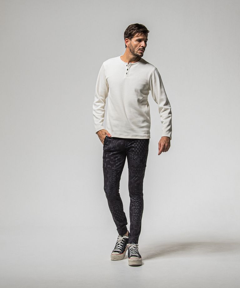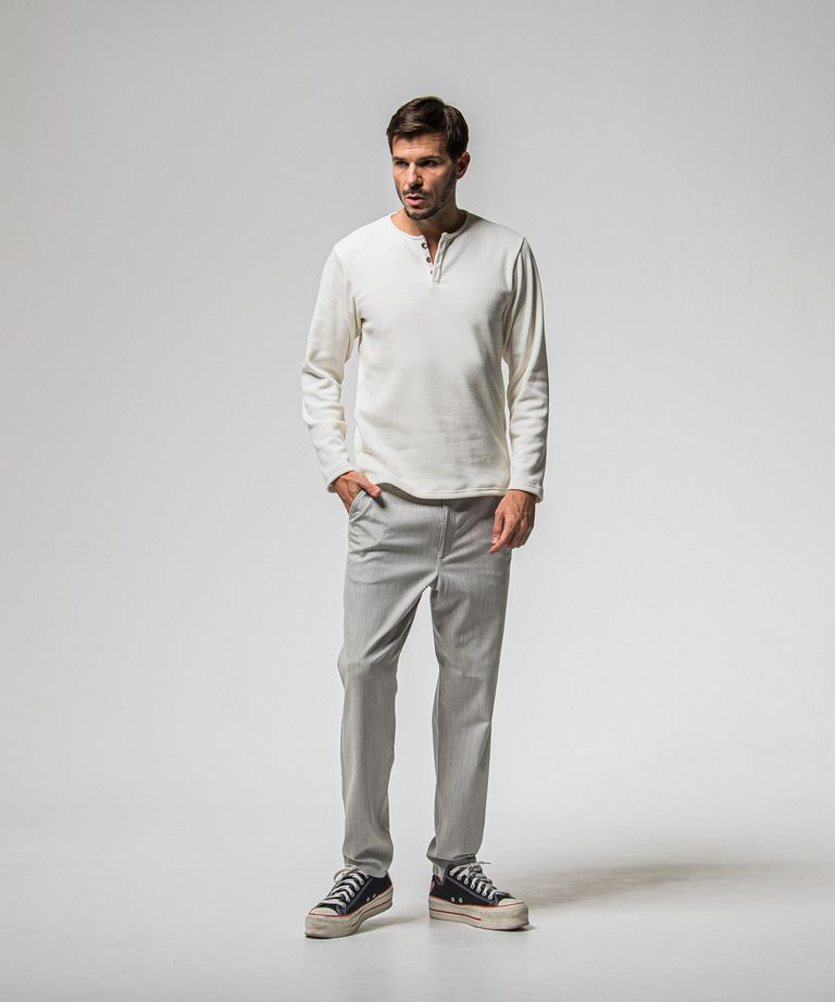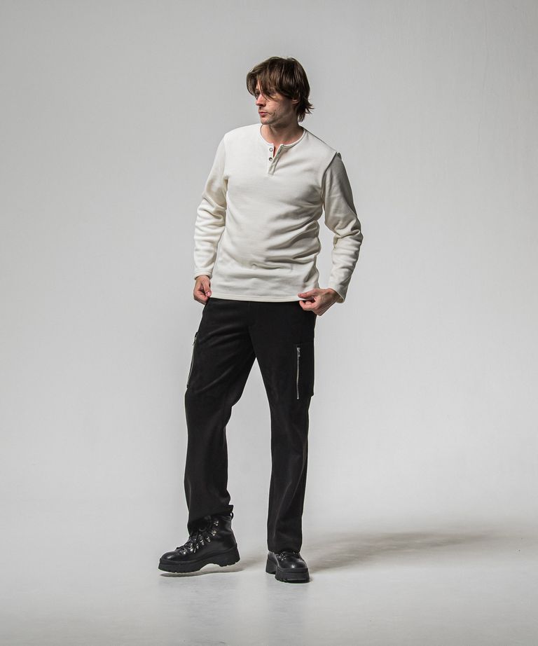 VELOURS FLEECE THERMAL HENRY / RC38-C-003 / 裏起毛サーマルヘンリーネックロングTシャツ / ホワイト (10月中旬入荷予定)