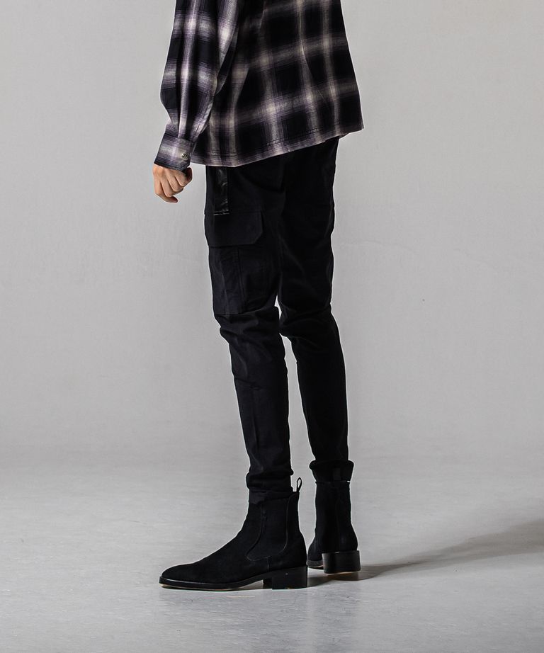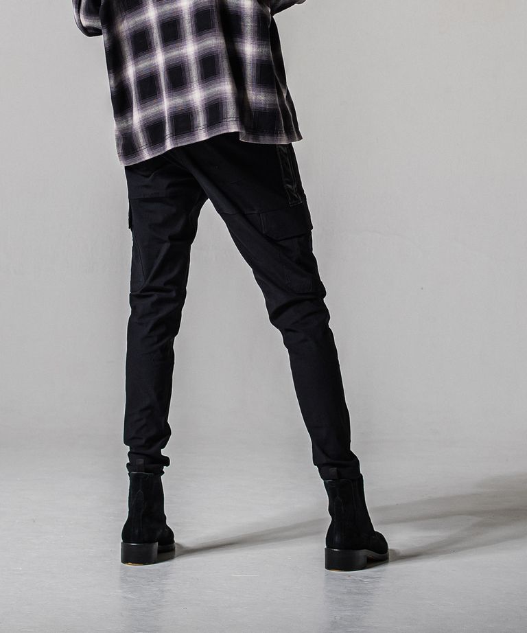 DARRELL CARGO PT / BASIC-ST-010 / レザーラインナイロンカーゴパンツ / ブラック×レザーブラック (2月下旬入荷予定)