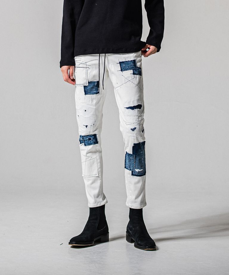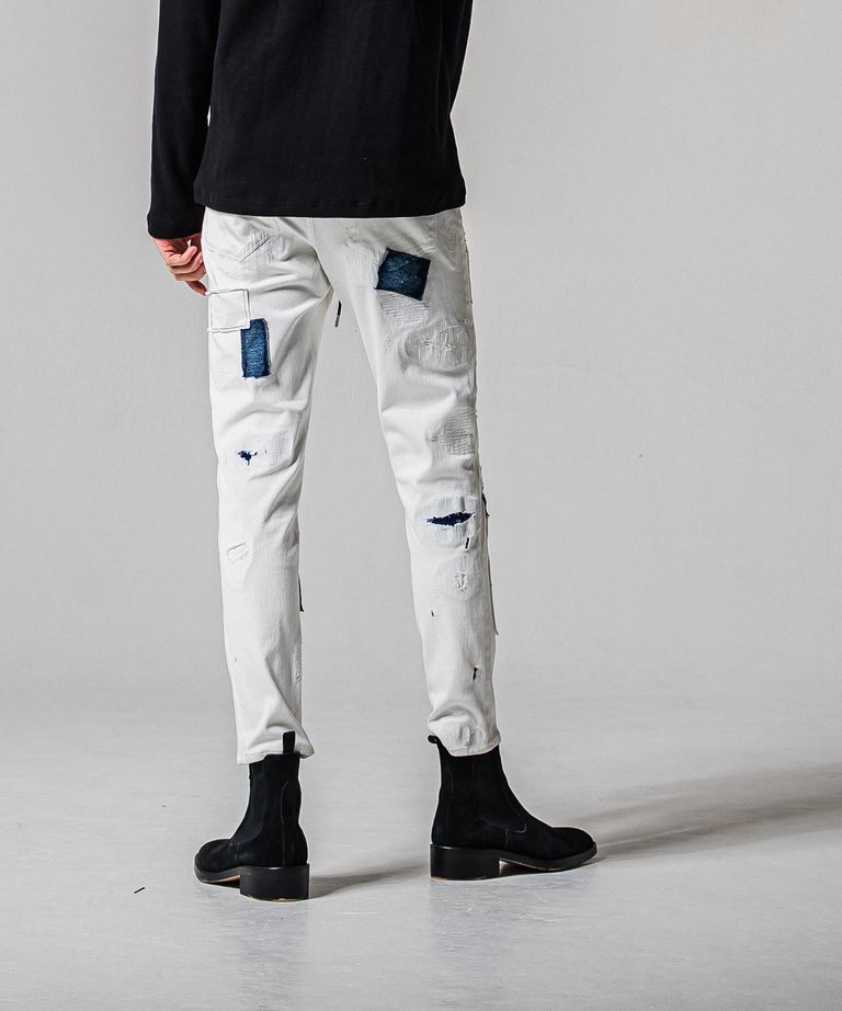 MICK DENIM JERSEY / BASIC-ST-020 / デニムジャージテーパードパンツ / ホワイトリメイク (2月中旬入荷予定)