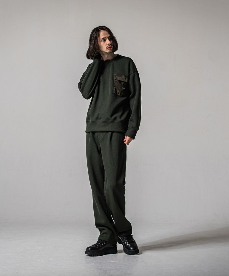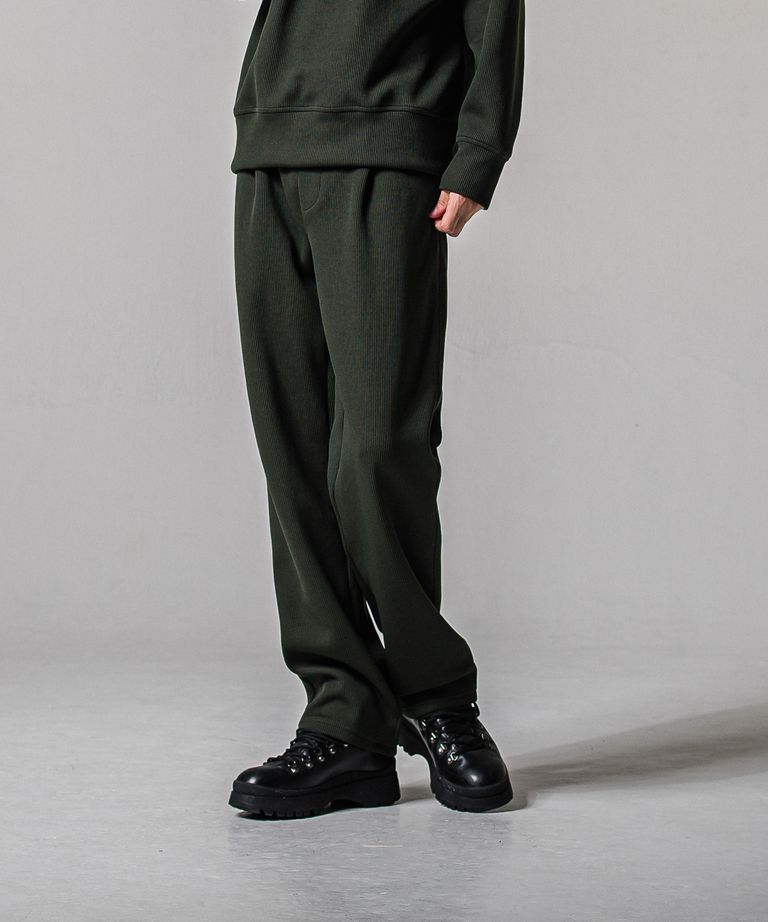 AZE WIDE TUCK PANTS / RC39-ST-016WT2 / 高機能畦編みニットワイドタックパンツ / カーキ (1月中旬入荷予定)