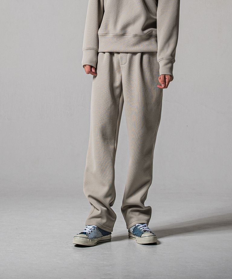 AZE WIDE TUCK PANTS / RC39-ST-016WT2 / 高機能畦編みニットワイドタックパンツ / グレージュ (1月中旬入荷予定)