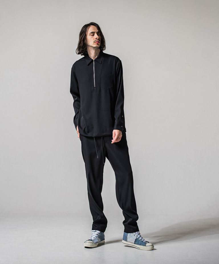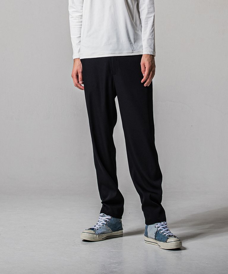 PAT WIDE EASY PANTS / RC39-ST-036BN / サテンワイドテーパードパンツ / ブラック (2月下旬入荷予定)