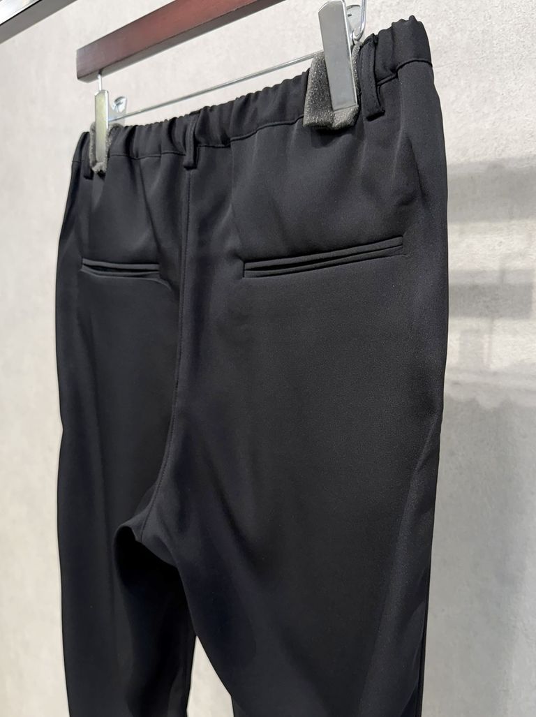 PAT WIDE EASY PANTS / RC39-ST-036BN / サテンワイドテーパードパンツ / ブラック