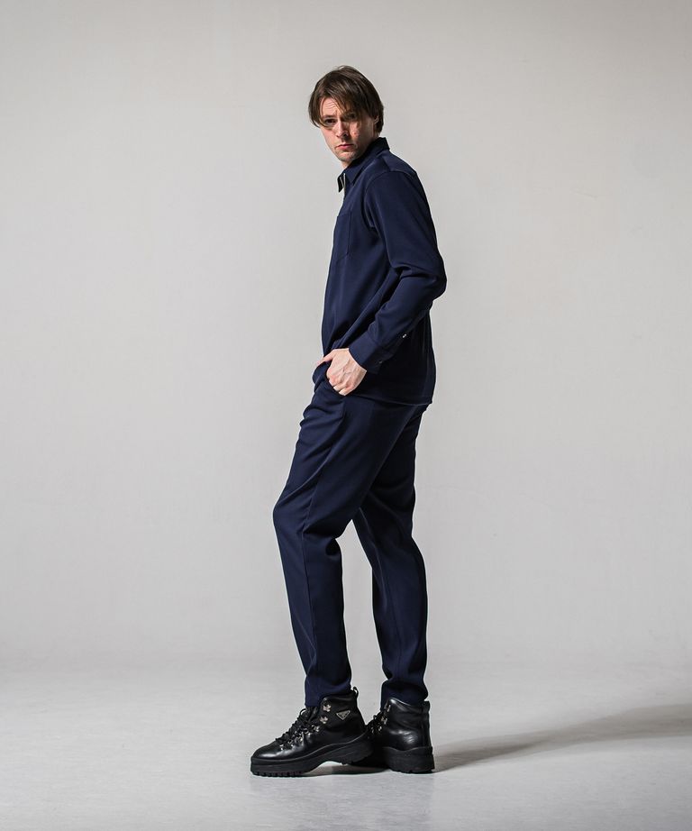 PAT WIDE EASY PANTS / RC39-ST-036BN / サテンワイドテーパードパンツ / ネイビー (2月下旬入荷予定)