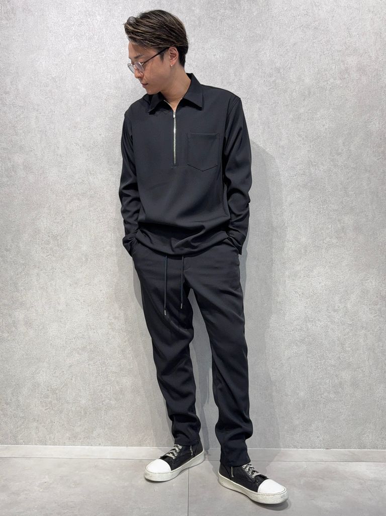 PULLOVER SATIN SHIRT / RC39-SH-002 / ハーフジップサテンシャツ / ブラック