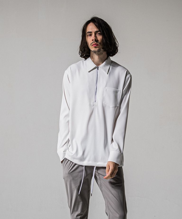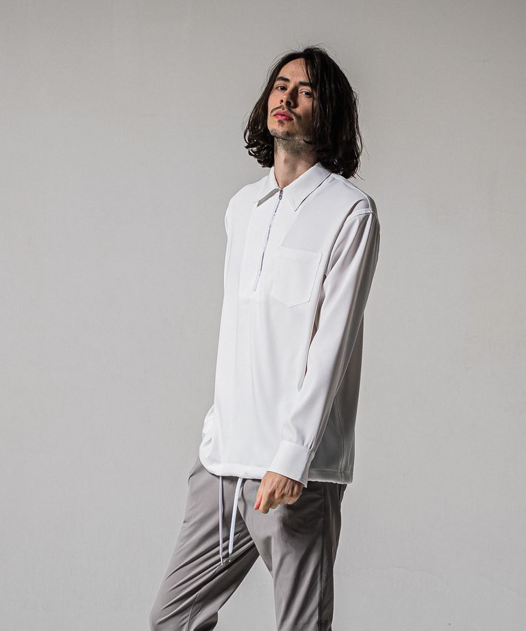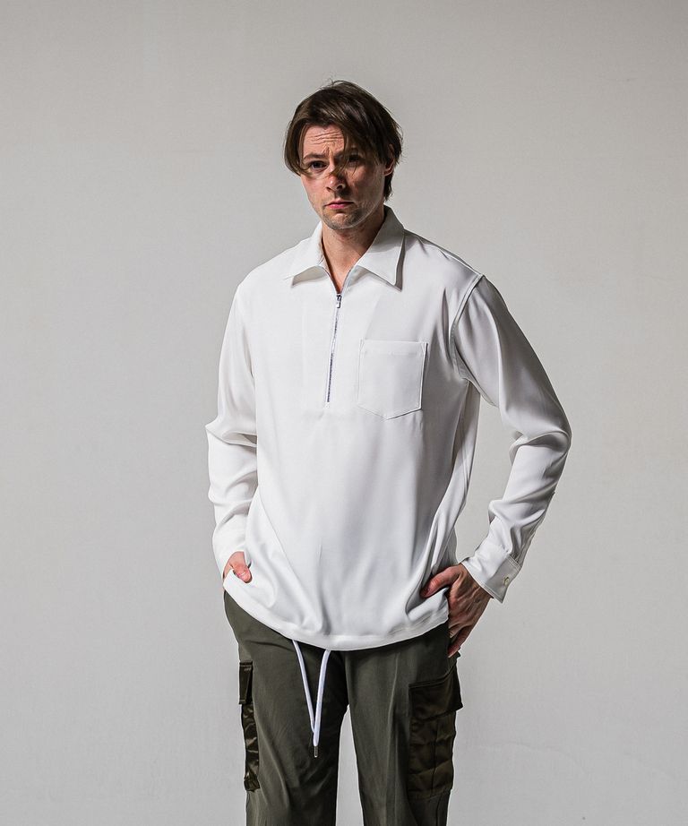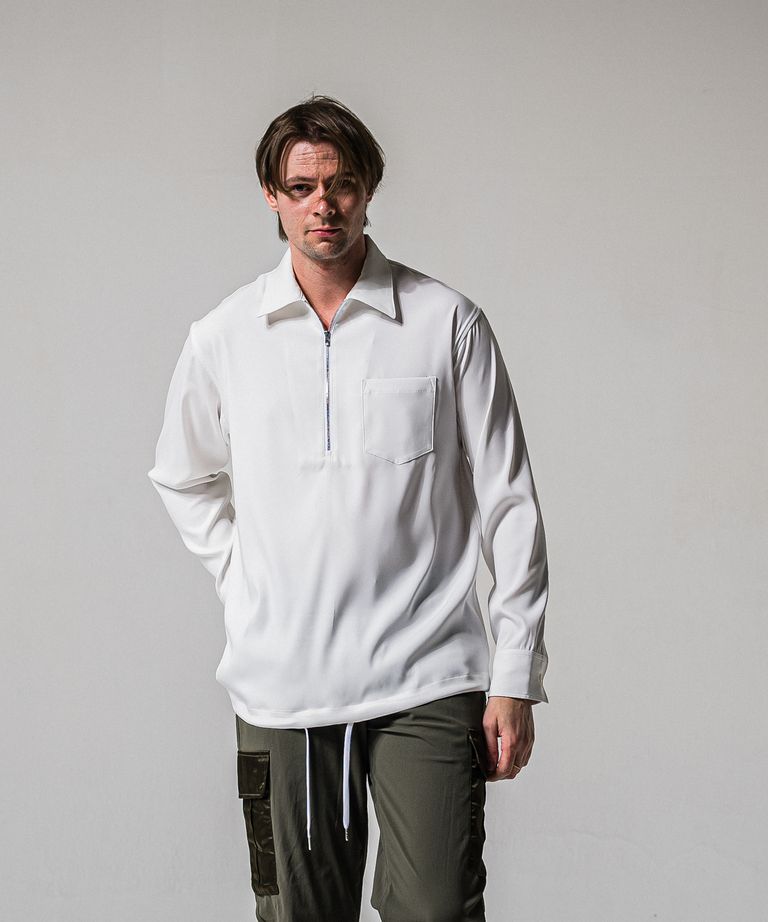 PULLOVER SATIN SHIRT / RC39-SH-002 / ハーフジップサテンシャツ / ホワイト (3月上旬入荷予定)