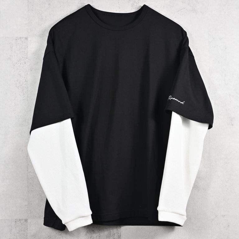 FAKE LAYERED WAFFLE LONG SLEEVE / RC39-T-007 / サーマルレイヤードロングスリーブTシャツ / ブラック×ホワイト (1月下旬入荷予定)