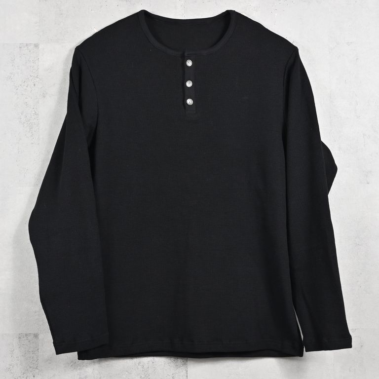 WAFFLE HENRY / RC39-C-001 / サーマルヘンリーネックロングTシャツ / ブラック (1月中旬入荷予定)