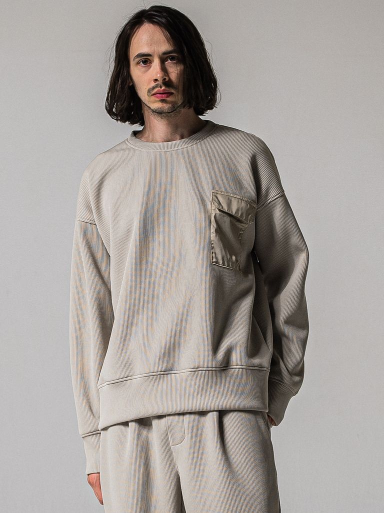 AZE MILITARY DROP TRAINER / RC39-C-003 / 高機能畦編みニットトレーナー / グレージュ (1月下旬入荷予定)