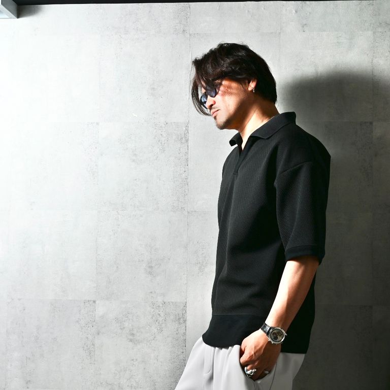 BLISTER POLO / DP1-T-005 / ブリスターニットスキッパーポロ / ブラック (4月上旬入荷予定)
