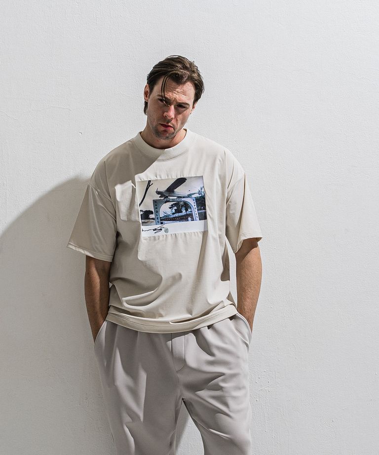 HELI OVER NYLON T / DP1-T-004 / ヘリプリントナイロンビッグTシャツ / グレージュ (4月上旬入荷予定)