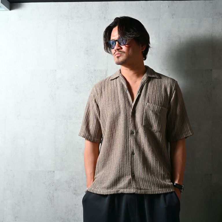 RUSSEL SHIRTS / DP1-SH-004 / ラッセル織り半袖シャツ / ブラウン (3月中旬入荷予定)