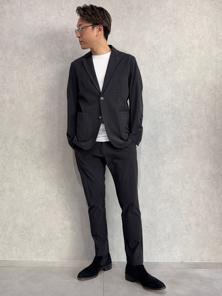 ストレッチナイロンセットアップ / uso-26062,usb-26062 / チャコール×ブラック(グレンチェック)
